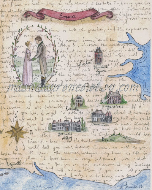 Not too long ago someone commissioned an Emma map and I had a left over sketch. It was really fun to paint and now there are 3 maps of Jane Austen's novels in my collection.